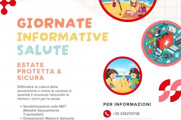 𝐆𝐈𝐎𝐑𝐍𝐀𝐓𝐄 𝐈𝐍𝐅𝐎𝐑𝐌𝐀𝐓𝐈𝐕𝐄 𝐒𝐀𝐋𝐔𝐓𝐄Dal 𝟐𝟖 𝐋𝐮𝐠𝐥𝐢𝐨 𝐚𝐥 𝟐𝟒 𝐀𝐠𝐨𝐬𝐭𝐨 presso gli stabilimenti balneari aderenti all’iniziativa. Temi:• Sensibilizzazione sull’uso corretto della protezione solare;• Sensibilizzazione sulle MST (Malattie Sessualmente Trasmissibili);• Dimostrazioni Manovre Salvavita;• Campagna prevenzione Colpi di Calore, Ustioni, Colpi di Sole.Obiettivi:Diffondere la cultura della prevenzione e vivere le vacanze in serenità e Leggi tutto…